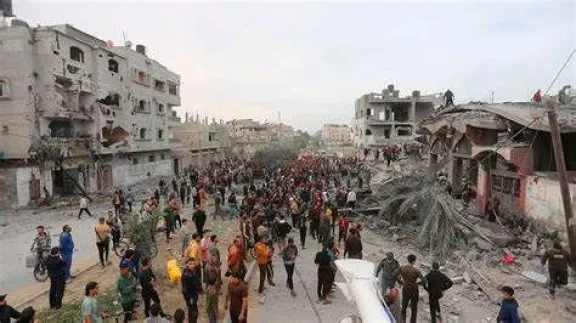 Un portavoz de las Fuerzas de Defensa de Israel (FDI), Avichay Adraee, advirtió este viernes a los desplazados gazatíes que "la guerra no ha terminado", tienen prohibido regresar al norte y han de permanecer en una zona humanitaria en el sur del enclave, por su propia seguridad, acompañando la advertencia lanzada desde los aviones.