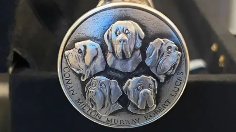 Los nombres de sus fieles compañeros son Conan, Murray, Milton, Robert y Lucas, y las cinco figuras quedaron grabadas por el orfebre Juan Carlos Pallarols en el bastón presidencial del libertario.