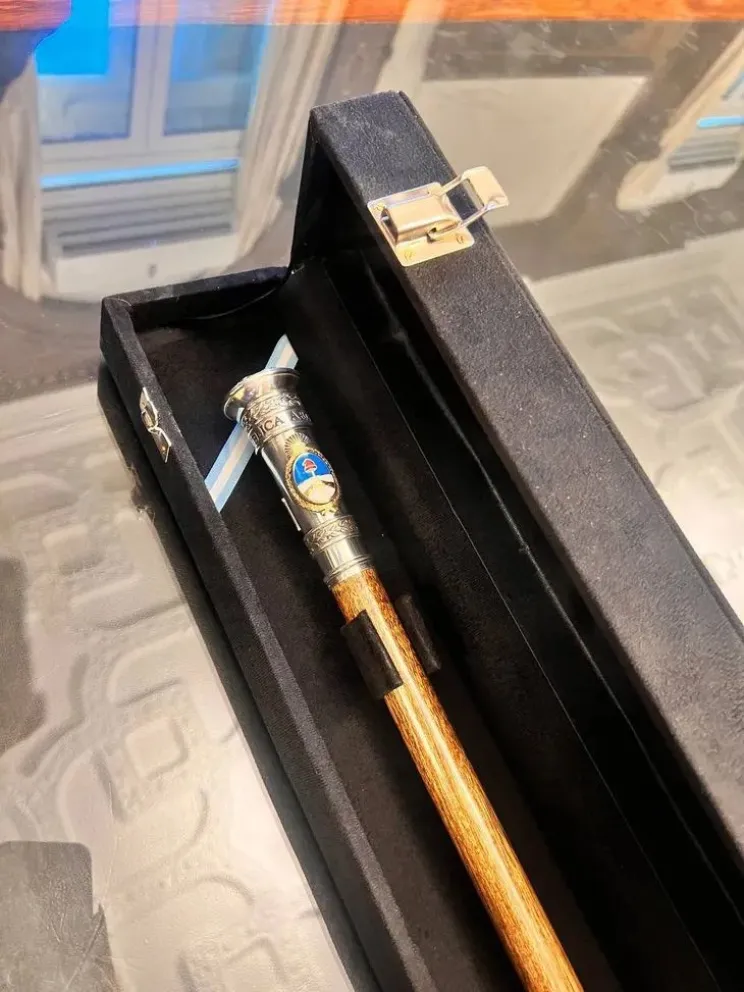 Milei iba a lucir en un principio el bastón presidencial elaborado por Juan Carlos Pallarols, el diseñador que lo entregó a Ceremonial a principios de la semana. El diseñador presentó un angosto estuche negro con un año rojo donde trasladaba al bastón elegido por el libertario para utilizar el domingo de su asunción en el marco de la Asamblea Legislativa.