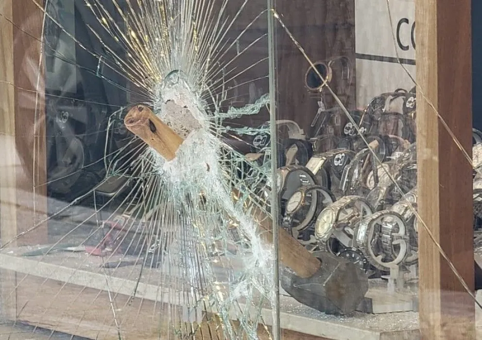 Asalto a la joyería: usaron puntales para trabar el sistema de rejas del local