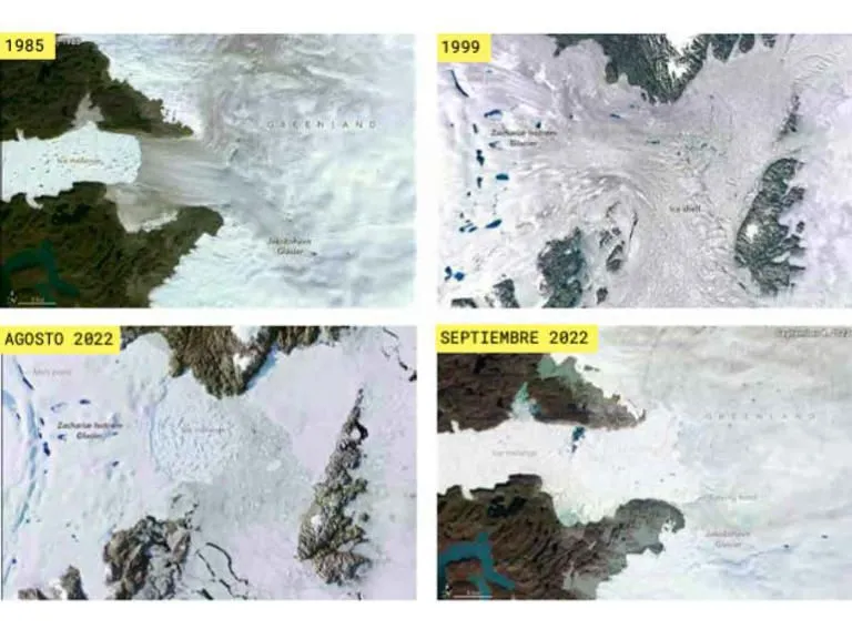 La impactante pérdida de hielo ha sido recopilada a través de cerca de 240.000 imágenes satelitales del punto de contacto de los glaciares con el océano desde 1985 hasta 2022.