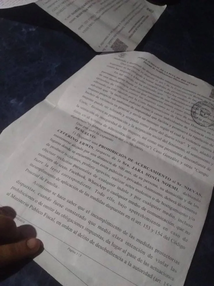 La orden de restricción emitida por la justicia rionegrina dispone la prohibición de acercamiento de Ceferino Nievas hacia su ex pareja, Sonia Jara, “debiendo mantenerse alejado por una distancia de 400 metros de su persona, de su domicilio y de loslugares donde se encuentre, sean estos públicos o privados”.