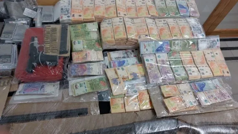 En total, lo recaudado lo valuaron en más de 100 millones de pesos. Entre lo decomisado hay 13 mil dosis de cocaína (alrededor de 6 kilogramos), 1,5 kilogramos de marihuana, 5 armas de grueso calibre, vehículos último modelo, incluídas camionetas 4x4, y dinero en efectivo.