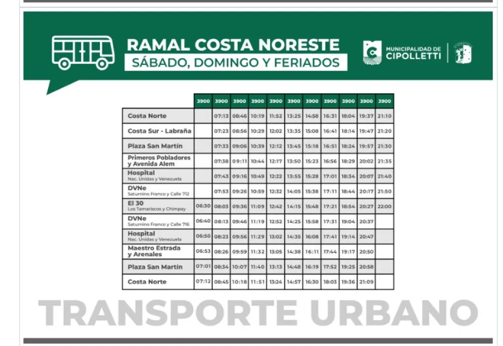 Cabe aclarar, para tranquilidad de los habitantes de los sectores mencionados, que la Secretaría de Fiscalización confirmó que será temporal, es decir sólo durante las vacaciones de invierno. Luego retomará con los horarios habituales en el sector Costa.