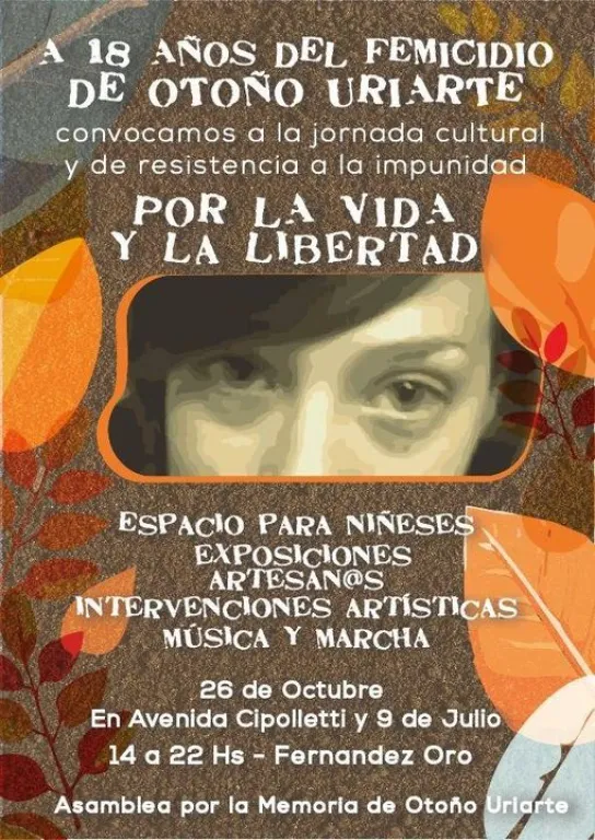 La jornada, bajo el lema "Por la vida y la libertad", comenzará a las 15 horas en la intersección de Avenida Cipolletti y 9 de Julio. Habrá exposiciones artísticas, intervenciones, espacio para niñeces y una marcha. Este acto cultural y de resistencia tiene como objetivo mantener viva la memoria de Otoño y exigir justicia. El juicio por su desaparición, vejación y muerte iniciará el 26 de noviembre en Cipolletti.