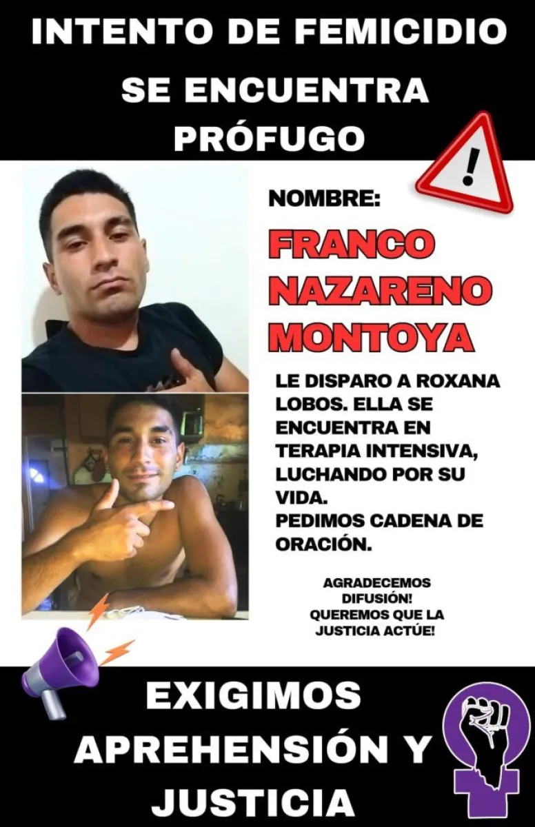 La policía de Neuquén difundió un pedido de “ubicación y aprehensión” de Franco Nazareno Montoya, el sujeto que le disparó a una “amiga” con una tumbera en el abdomen. La mujer permanece internada en el Hospital Castro Rendón de la capital neuquina en “estado crítico”. Sus familiares organizaron una cadena de oración por su recuperación.