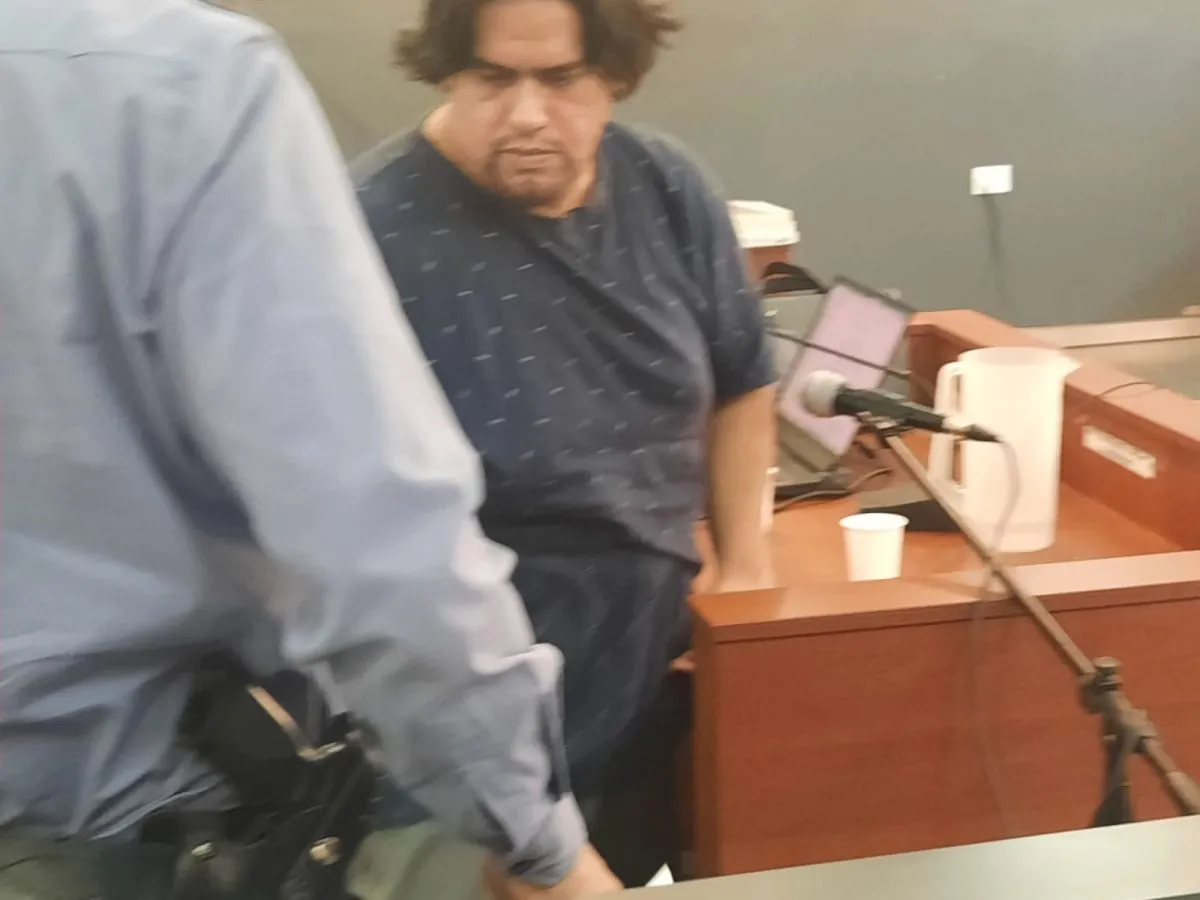 Terminó la audiencia: el Tribunal ya lo consideró culpable. "Coni" Espinoza es retirado por la policía y trasladado a la comisaría de Contralmirante Cordero. Foto: Cipo360.