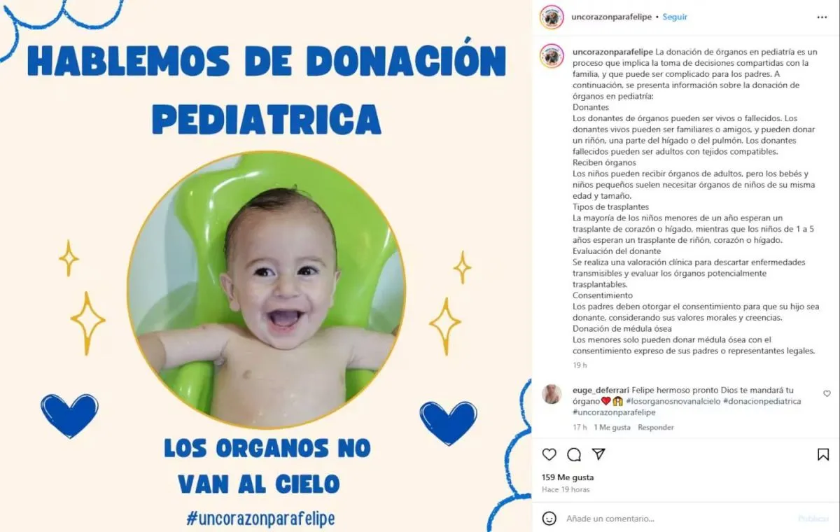 Felipe Palagani, un bebé de siete meses oriundo de Neuquén, se encuentra en emergencia nacional a la espera de un trasplante de corazón. Su lucha comenzó hace dos meses con lo que parecía ser una bronquiolitis, pero una infección bacteriana derivó en una sepsis que comprometió gravemente su corazón. Desde entonces, su familia no ha dejado de batallar por su vida y por visibilizar la importancia de la donación de órganos pediátricos.