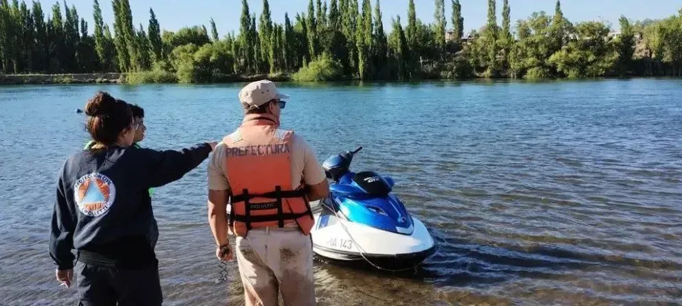 De inmediato, se dio aviso a personal policial de Mosconi y a bomberos. También se comunicó la situació a Prefectura que envió embarcaciones desde Balsas las Perlas hacia Roca y también desde Huergo a Roca, para recorrer el río intentar dar con el supuesto cuerpo.