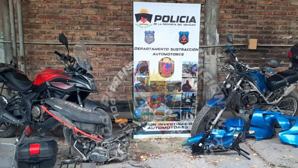 La policía realizó dos allanamientos que permitieron desbaratar el accionar de una banda que se dedicaban al robo y desarmado de motos de gama alta y media. Los operativos se realizaron durante la madrugada en dos domicilios ubicados en la toma El Nido y en el barrio Hipeba, en el noroeste de Neuquén capital.