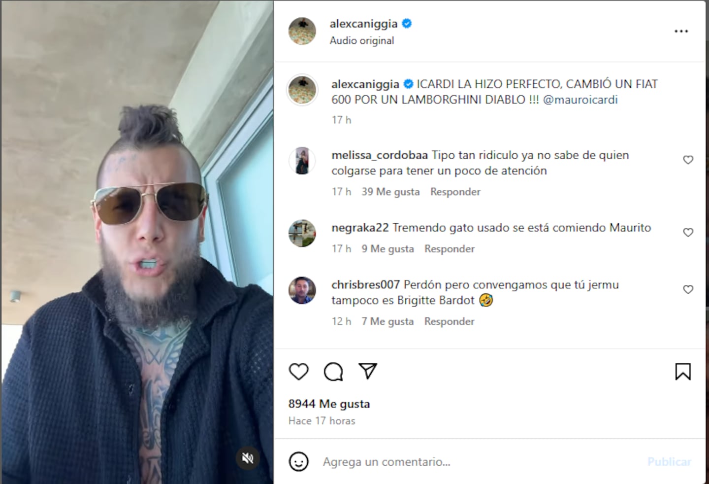 La historia comienza con un video en Instagram donde Alexander Caniggia inicia una avalancha de críticas dirigidas, aunque de manera indirecta, hacia Wanda Nara. Utilizando un lenguaje lleno de metáforas confusas y resonantes, el mediático sugirió divisiones alegóricas entre las figuras involucradas, capturando la atención de miles que siguen de cerca cada movimiento de estas celebridades.