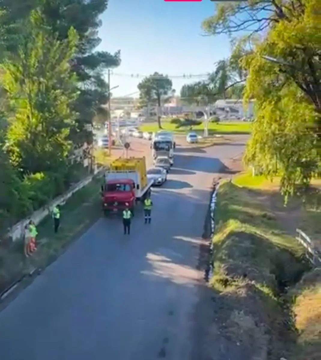 Esto será para evitar que camiones de gran altura choquen el puente mientras circula el Tren del Valle. Próximamente se solucionará el "problema de fondo", como explicó el intendente, colocando barreras u otra medida.