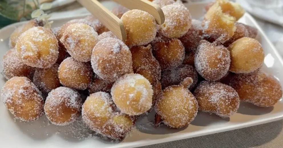 9. Espolvorear los buñuelos con azúcar y servir calientes.