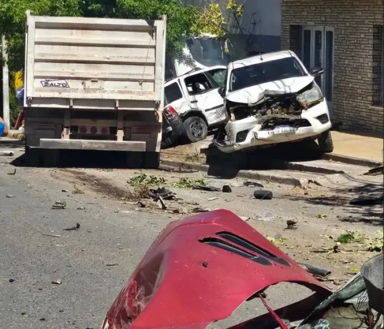 Uno de los autos quedó completamente destruido, y además del daño a los vehículos, el camión arrasó con postes, árboles y el garaje de una casa. A pesar de la magnitud del impacto, solo una persona resultó herida: el conductor del camión, quien fue trasladado al Hospital Bouquet Roldán con un fuerte dolor lumbar.