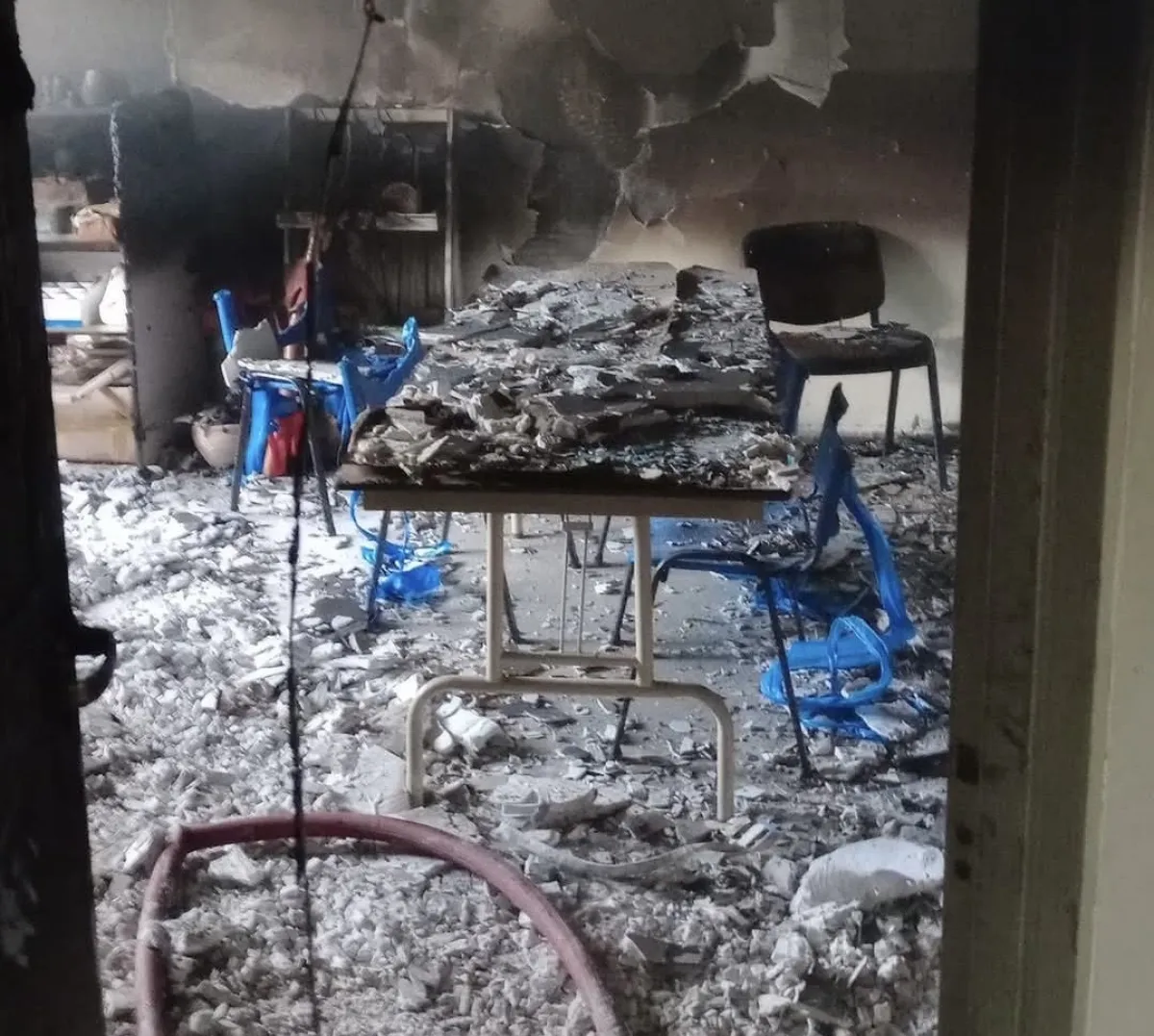 Si bien no hubo personas heridas, toda la estructura resultó afectada por humo y hollín, y las pérdidas en el aula fueron totales
