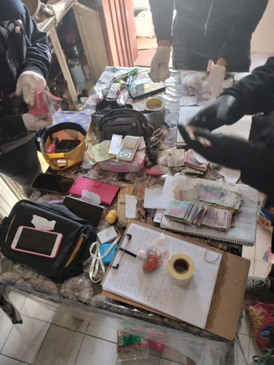 El resultado fue contundente: se incautaron más de 2.7 millones de pesos en efectivo y dólares, marihuana, clorhidrato de cocaína compacta, más de 100 gramos de metanfetaminas, balanzas de precisión, una contadora de dinero, armas de fuego (incluyendo una de fabricación casera) y más de 15 teléfonos celulares.