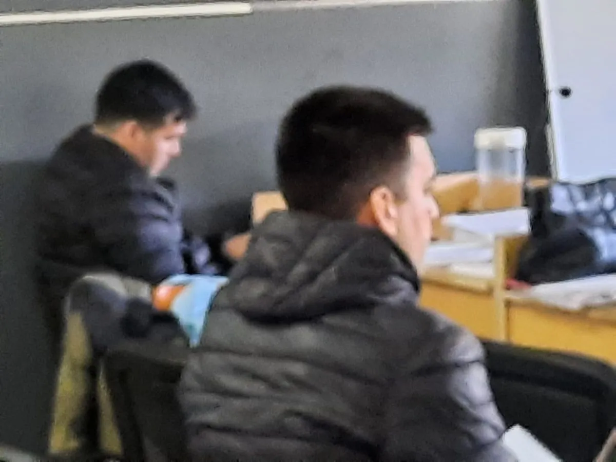El cabo Jorge Sosa y el sargento Alcides Quintrel durante un momento del juicio que se viene desarrollando en los trbunales. Foto: Cipo360.