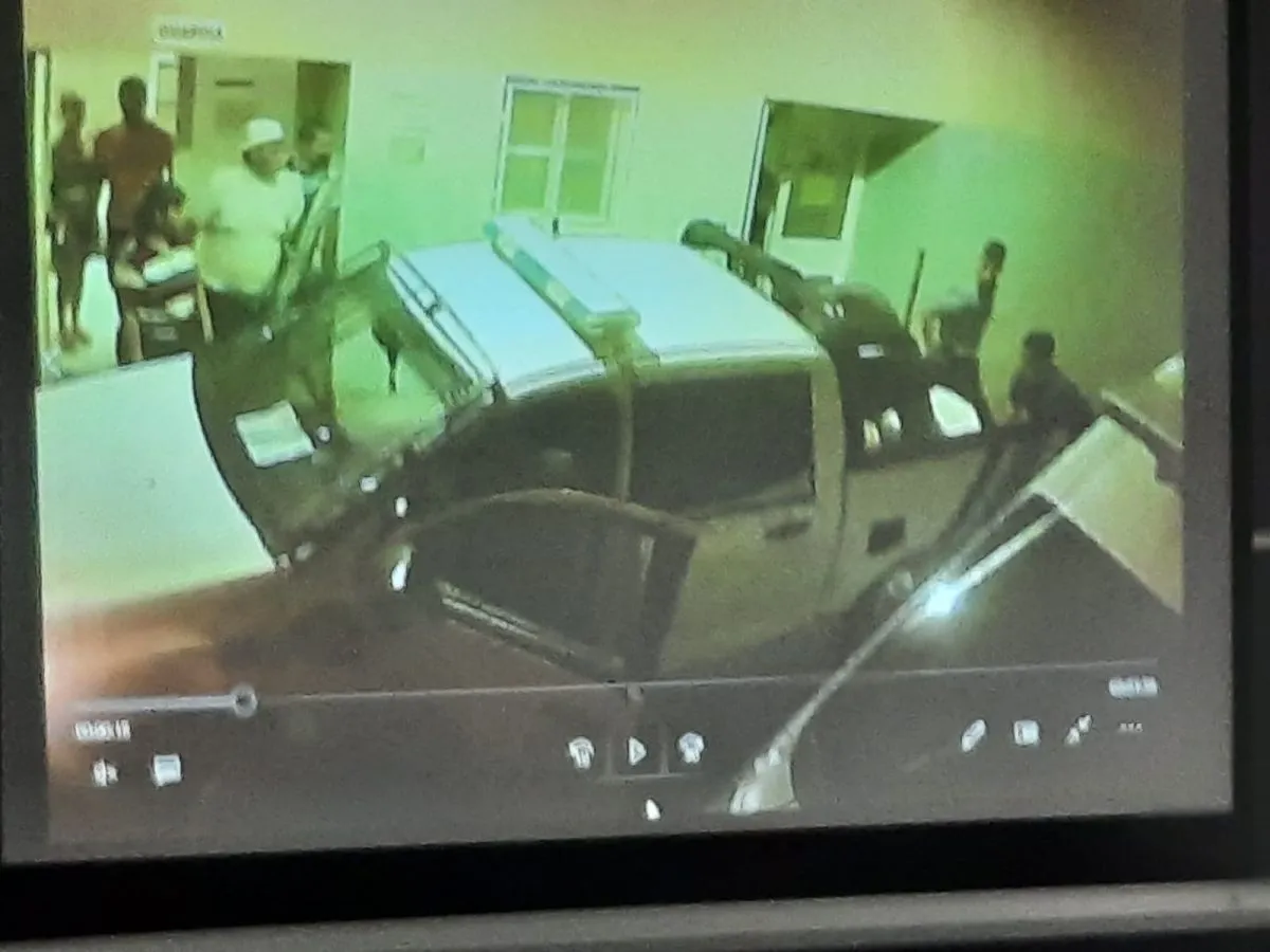 La siguiente escena fue en el ingreso a Emergencias. A las 0.19, la camioneta ingresa al lugar, bajan varios individuos y llevan a un cuerpo exánime hacia el interior.