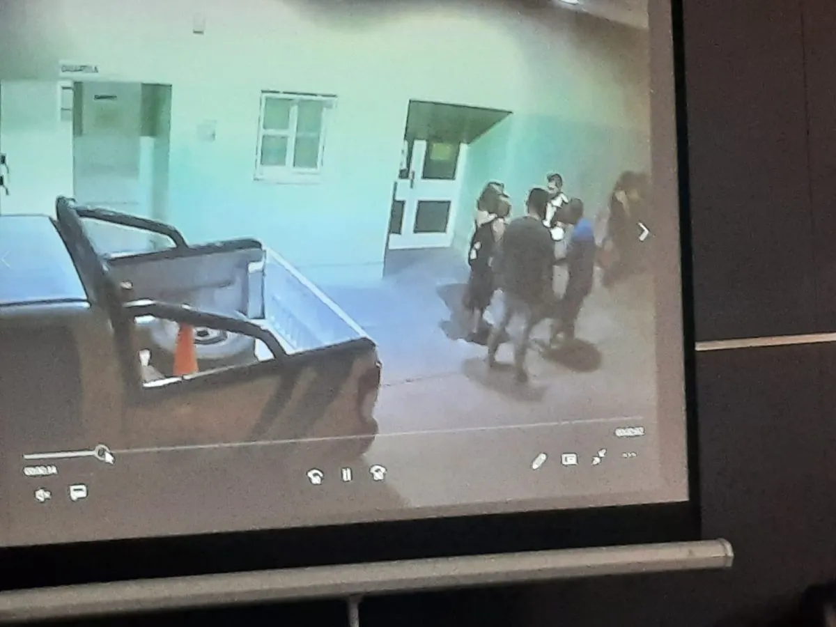 La imagen registra el momento posterior al ingreso de Gatica a la sala de Emergencias. Los que quedaron en el exterior se quedan conversando. Fotograma de video.
