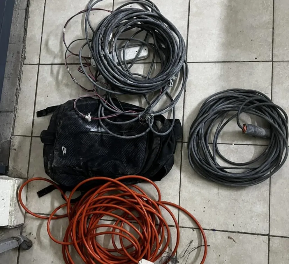 Durante la requisa, constataron que llevaba una mochila cargada con rollos de cable tipo alargue. Al ser consultado por el origen del material, el hombre no pudo brindar una explicación coherente, por lo que fue demorado y trasladado a la unidad policial para continuar con las actuaciones correspondientes.