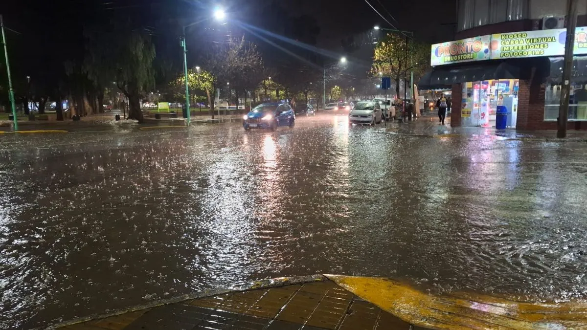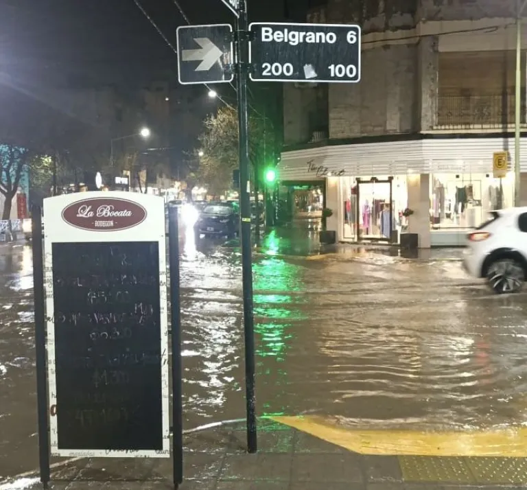 Entre las calles más afectadas se encuentran Miguel Muñoz, Roca y España, especialmente frente a la Plaza San Martín, donde todas las esquinas presentan acumulación de agua complicando la circulación y generando inconvenientes.