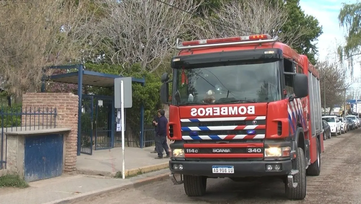 Bomberos, Protección Civil y autoridades municipales participaron de un simulacro por amenaza de bomba en la Escuela Estación Limay de Cipolletti