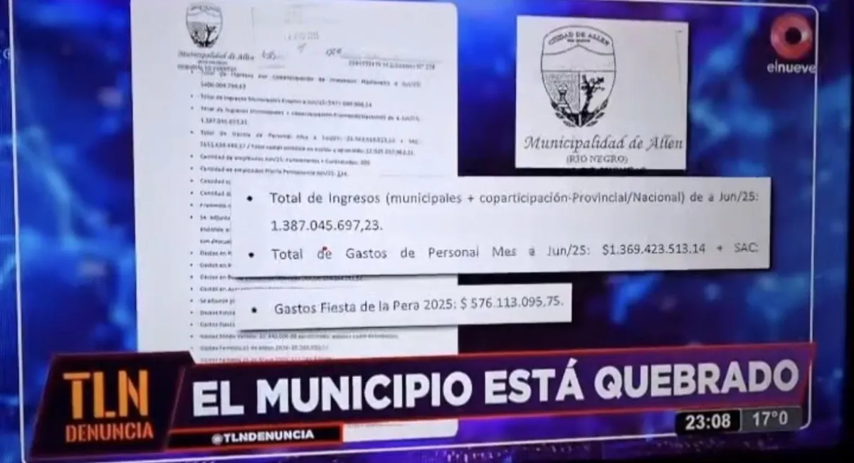La delicada situación que atraviesa Allen dejó de ser un tema exclusivamente local. El programa “Telenueve Denuncia”de Canal 9 emitió un informe que puso en primera plana las irregularidades y el caos que vive la ciudad, apuntando de lleno a la administración del intendente Marcelo Román. Con números, datos y testimonios, el especial expuso una gestión sin rumbo, marcada por sospechas de corrupción y gastos que contrastan de manera brutal con la realidad de los vecinos.