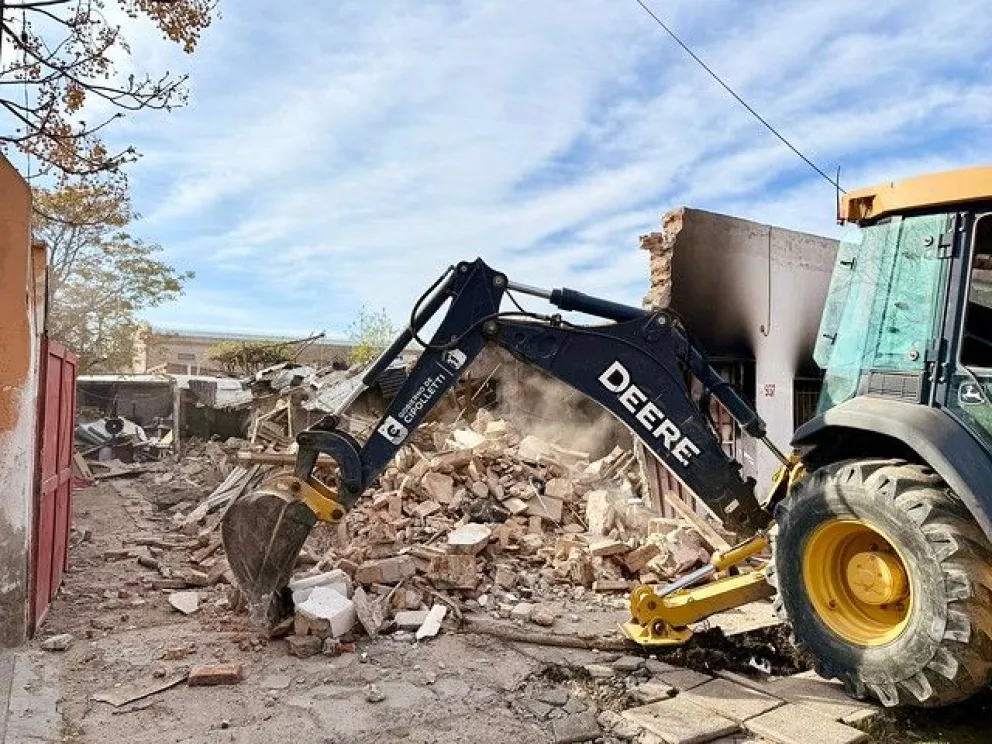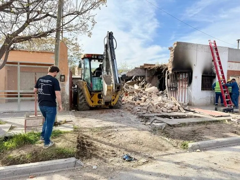 En un operativo conjunto entre el municipio de Cipolletti y la Policía de Río Negro, este jueves 25 de septiembre se llevó a cabo la demolición de una vivienda que funcionaba como aguantadero en el barrio Del Trabajo, sobre calle Pagano 937.