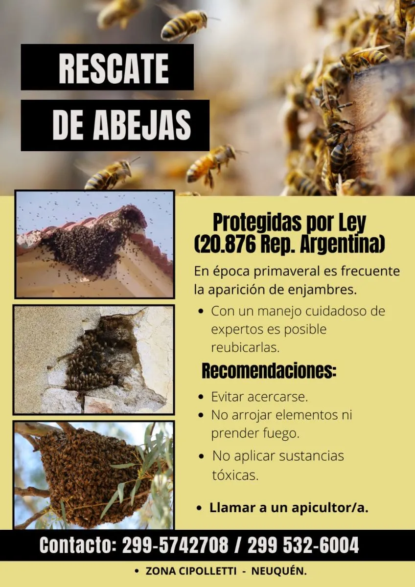 La recomendación principal es no acercarse demasiado, no arrojarles agua ni sustancias tóxicas, y mucho menos intentar prender fuego para espantarlas. Este tipo de acciones sólo logra poner a las abejas a la defensiva y aumenta el riesgo de picaduras. Además, se recuerda que en Argentina las abejas están protegidas por ley, por lo que no está permitido dañarlas.