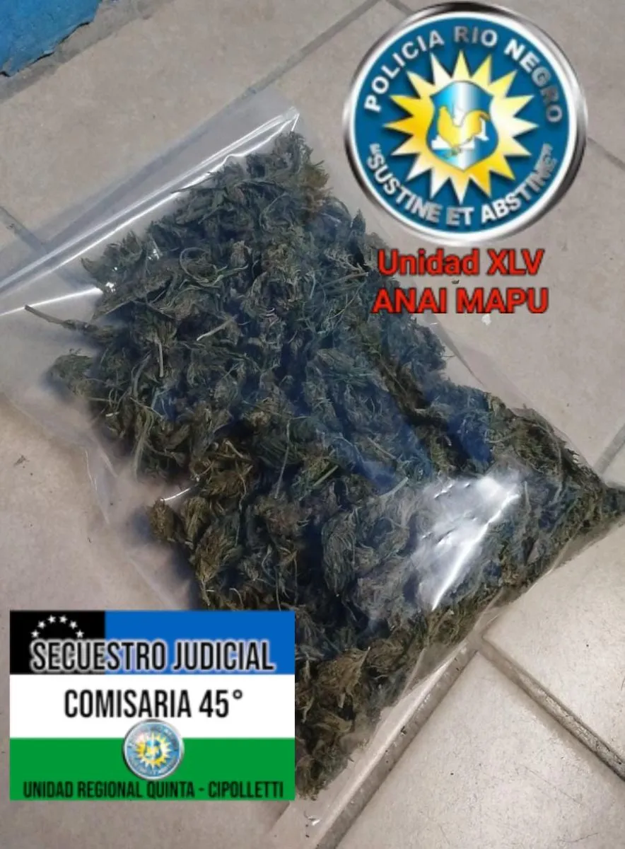 La unidad 45 de Cipolletti intervino en un procedimiento de rutina que finalizó con el secuestro de marihuana. | Foto Policía Río Negro