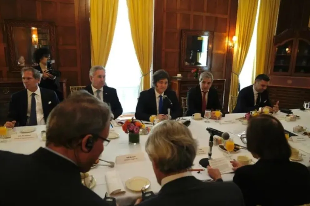 A lo largo de una detallada presentación, que tuvo lugar en la histórica residencia de Park Avenue, Milei estuvo acompañado por figuras clave de su administración, entre las que destacó la presencia del ministro de Economía, Luis Caputo, el canciller Pablo Quirno y el embajador argentino ante Estados Unidos, Alec Oxenford. Juntos, abordaron planes sobre reformas estructurales y ajustes fiscales que buscan sostener un nuevo impulso económico en el país.