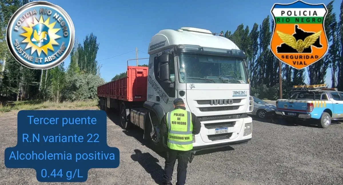 El conductor del camión registró 0.44 gr/l de alcohol en sangre. Foto: Policía Río Negro.