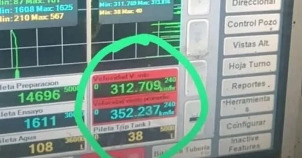En el yacimiento de Manantiales Behr, las corrientes si superaron los 300; más precisamente 312 km/h; aunque tuvo una constante -al igual que en Diadema Argentina- de 215.