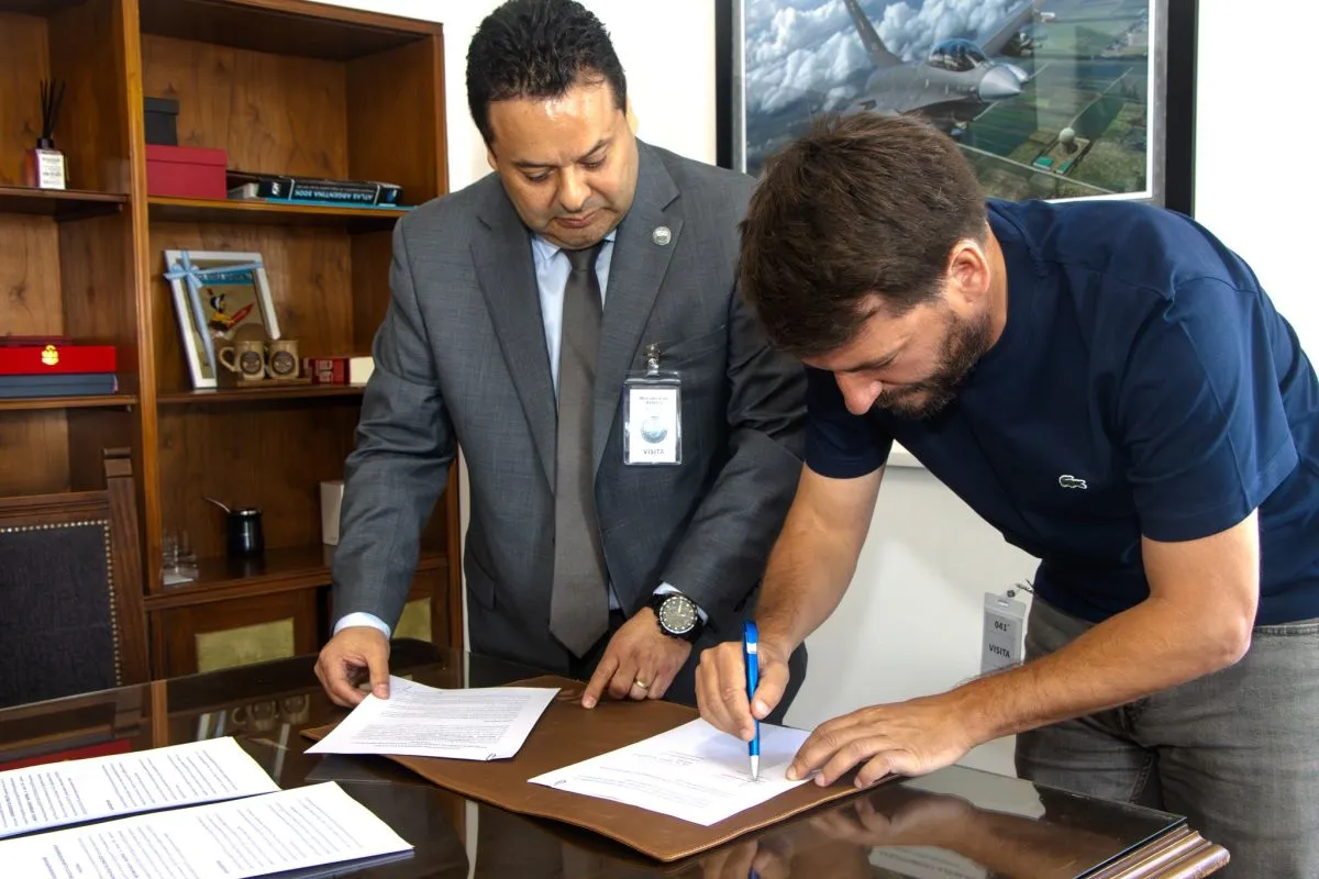 El intendente Buteler firmó el convenio de traslado con el ministerio de Defensa, en Buenos Aires. Foto: gentileza.