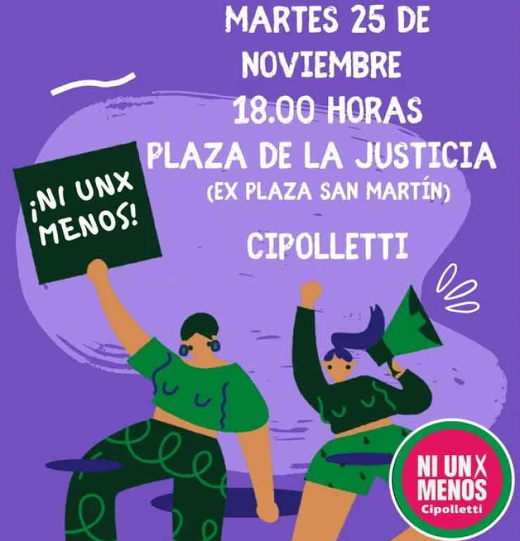 Por su parte, la Asamblea Ni Una Menos Cipolletti realizará una radio abierta en la plaza San Martín. A partir de las 18, la organización convocó para “seguir exigiendo al gobierno provincial y Nacional que apliquen políticas públicas para prevenir y sancionar la violencia de género”.