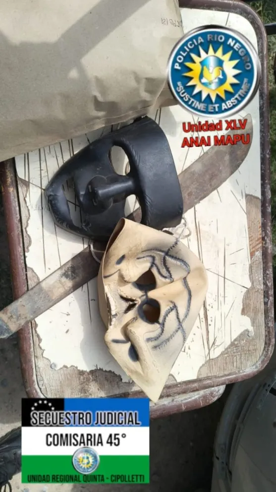 También se secuestró un arma de fuego con mango plástico, un chaleco balístico con la inscripción “Policía de Río Negro” y sus placas, otro chaleco tipo balístico de color negro, un arma de fabricación casera y una réplica de arma de fuego calibre 9 mm marca Pietro Beretta. En el domicilio además se encontraron herramientas como alicates corta cable de distinto tamaño, un tonfa policial, municiones y cartuchería de varios calibres, junto con una sobaquera, ocho teléfonos celulares y una tablet.