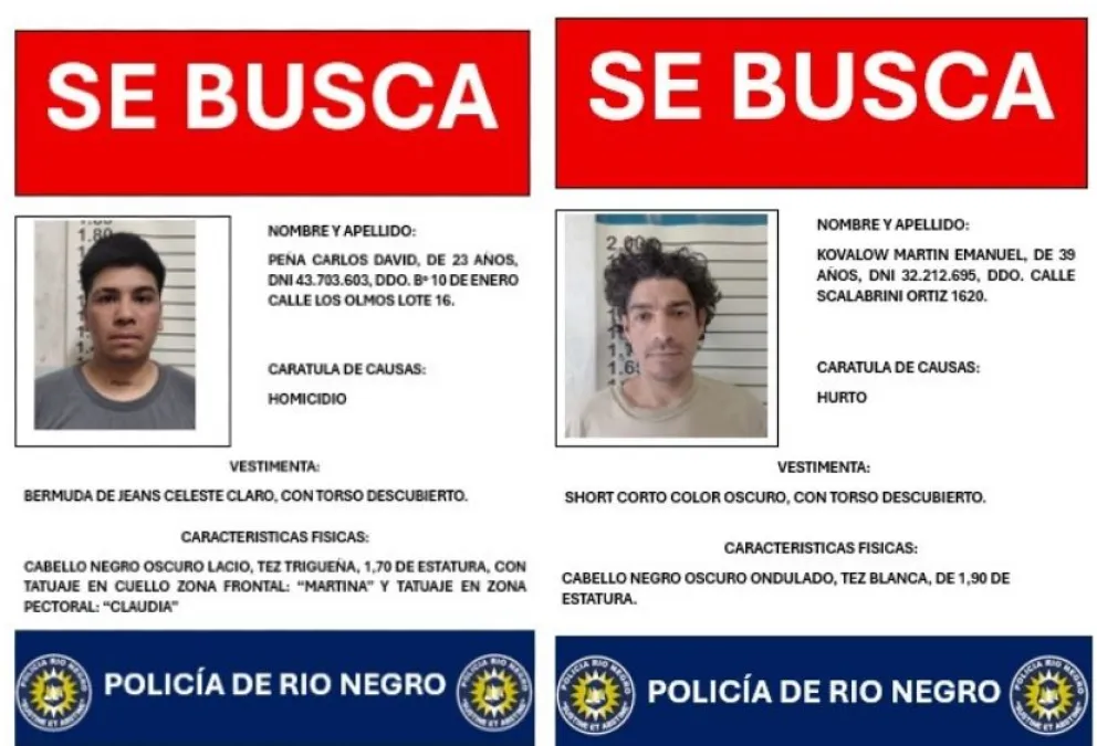Los prófugos fueron identificados como Carlos David “Peke” Peña (23), imputado por el homicidio de Bruno Antical, y Martín Emanuel Kovalow (29), detenido por hurto.