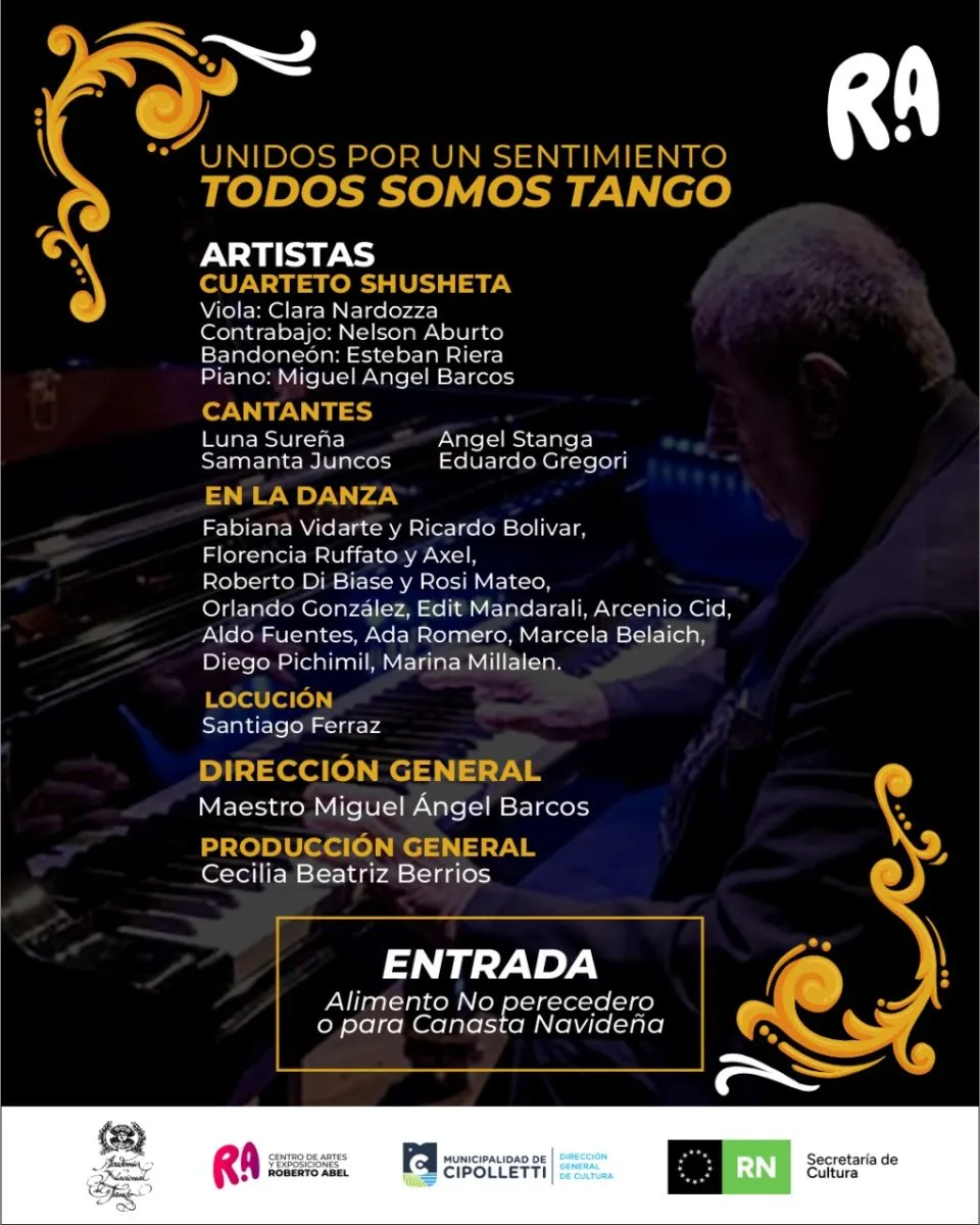 El festejo también marcará el primer evento oficial de la Academia Nacional del Tango como filial Cipolletti, un espacio que pronto tendrá sede propia y que impulsa la difusión del género en todas sus formas.