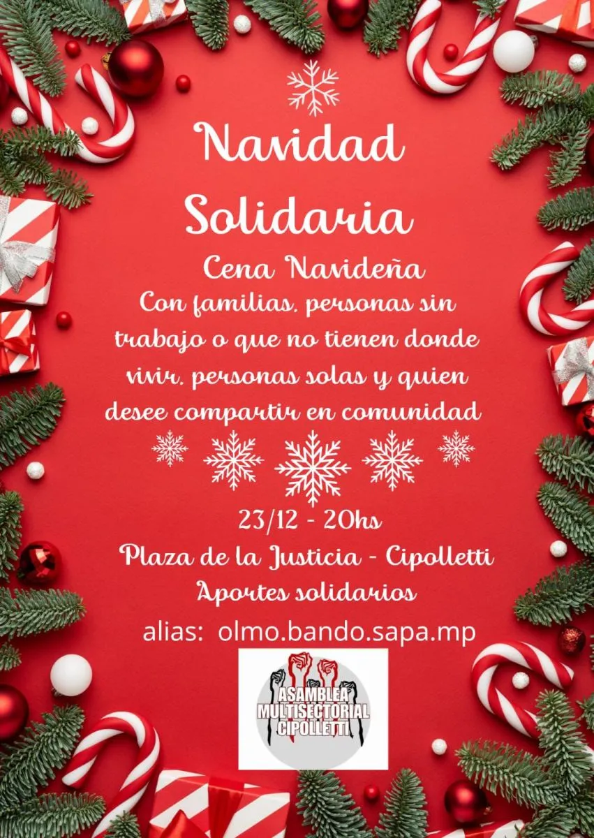 La Asamblea Multisectorial de Cipolletti convoca a un encuentro solidario para este 23, en un contexto de crisis social y económica, con el objetivo de compartir desde el amor, la solidaridad y la conciencia colectiva.