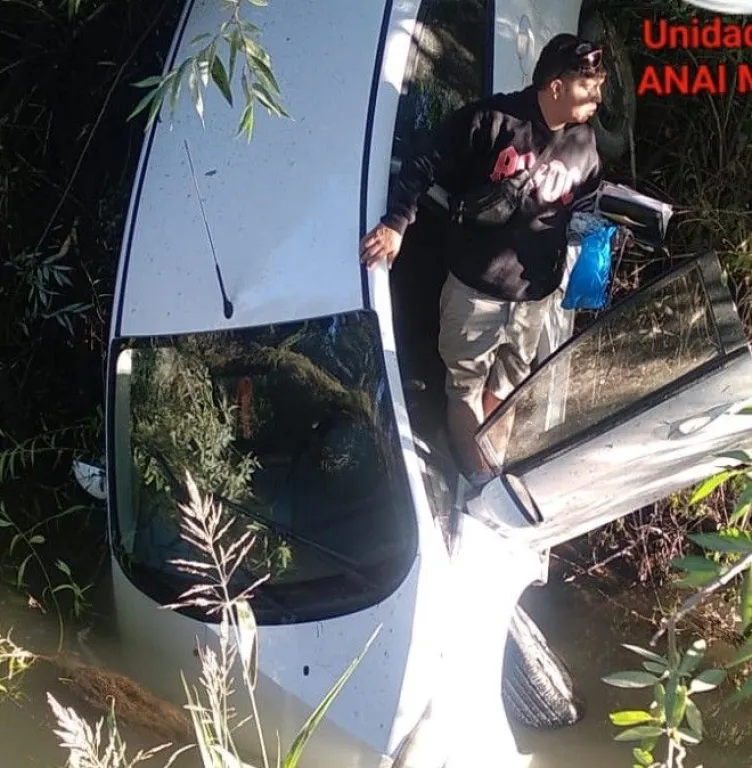 El conductor de un Ford Fiesta color blanco protagonizó una arriesgada maniobra cuando circulaba por Rimmele; derrapó antes de llegar a San Luis, perdió el control y el vehículo cayó al desagüe pluvial que corre paralelo a la calle. No hubo víctimas ni lesiones, pero el hombre, mayor de edad, trató de escapar corriendo cuando llegó la policía.