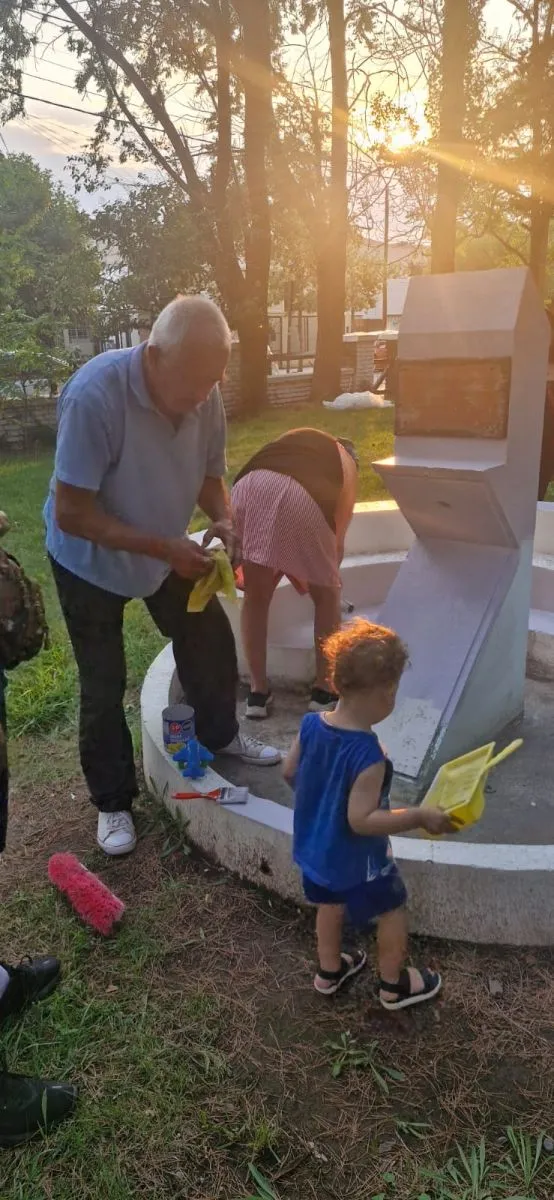 Un grupo de admiradores de Osvaldo Soriano se juntó bajo el mítico peral para arreglar el monolito y recordar aquellos cuentos que traen el Cipolletti de ayer. Foto: gentileza.