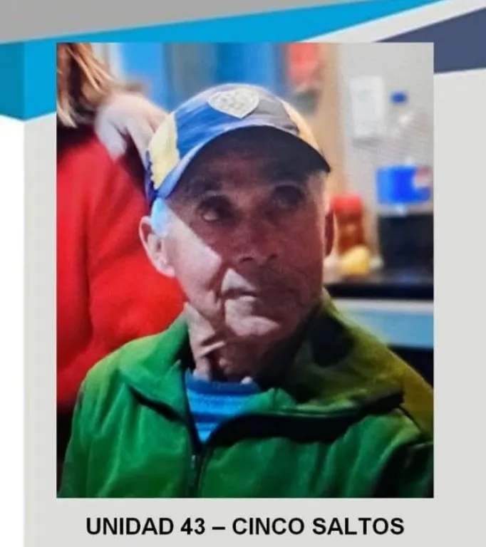 El hombre fue identificado como Ardi Manuel Rebolledo, de 75 años. Había salido de su casa el martes. Vestía buzo gris, remera verde con rojo manga larga, gorro Boca y portaba una botella de agua.