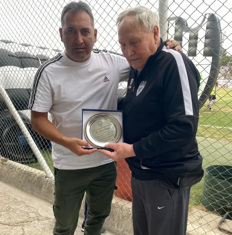El emotivo encuentro entre el Chala Parra y su mentor futbolístico, el eterno Juan Scopel. Foto: gentileza.