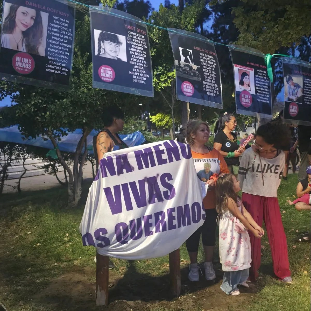 La jornada incluyó intervenciones artísticas, música y la instalación de un memorial con los nombres de mujeres asesinadas por violencia de género. Foto gentileza Asamblea Ni Una Menos