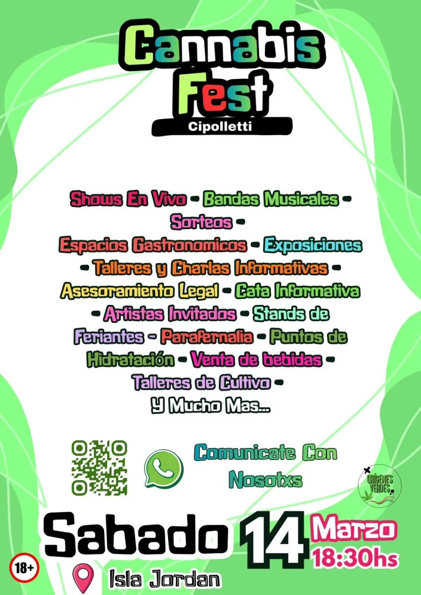 Este sábado 14 de marzo se llevará a cabo en la Isla Jordán la tercera edición del Cannabis Fest Cipolletti, un evento que propone abrir el debate y difundir información sobre el uso medicinal del cannabis, además de generar un espacio de encuentro cultural y educativo para la comunidad.