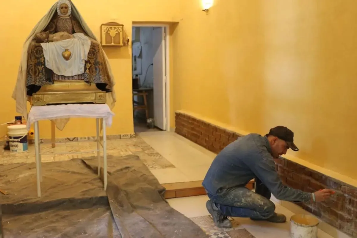 La capilla —construida en 1943— es parte de la vida cotidiana del lugar. Por estos días la están acondicionando para la celebración del sábado. Foto: Tania Domenicucci.