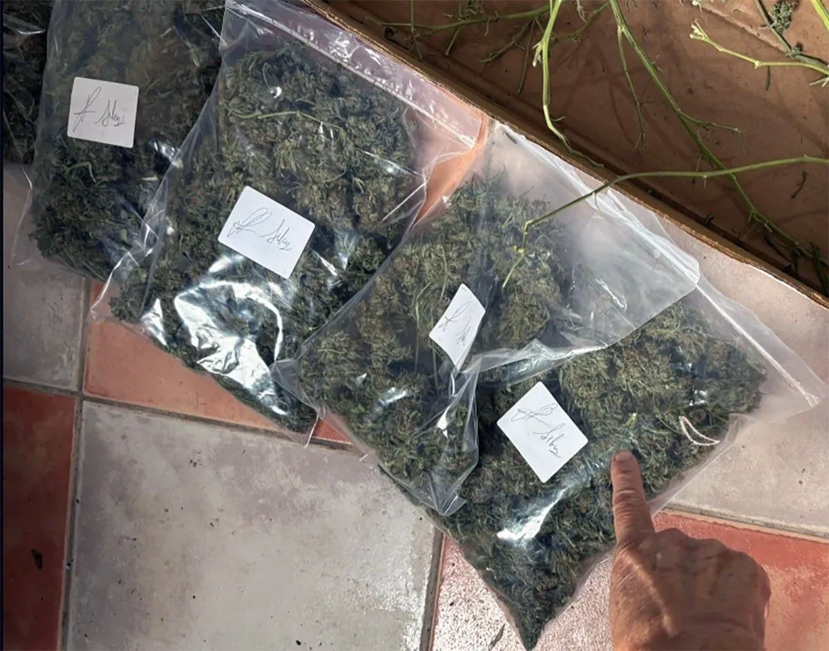 Dentro de la propiedad, hallaron exactamente 1,273 kilos de cogollos de marihuana secos y preparados para la venta. Además del material listo para el consumo, se secuestraron tres plantas de cannabis en producción, cigarrillos armados, fertilizantes y una balanza de precisión, lo que refuerza la hipótesis de que en el lugar se realizaba el ciclo completo de cultivo y distribución. También se incautaron teléfonos celulares y cerca de 400.000 pesos en efectivo, presuntamente vinculados a la actividad ilícita.