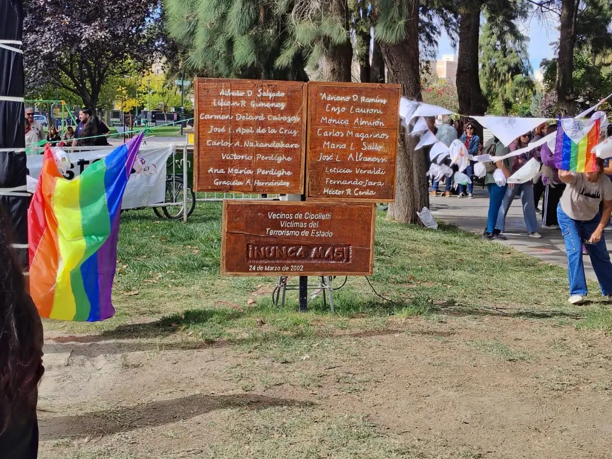 El memorial rescata los 17 nombres de vecinas que fueron secuestradas en Cipolletti o que vivieron en la localidad. Ahora hay un número 18: Felipe Lara vivió en Ferri durante varios años.