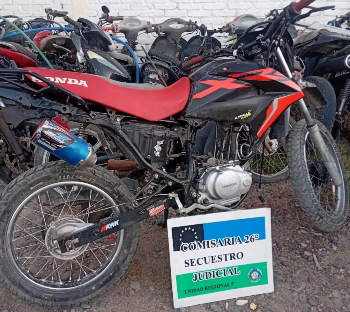 Ante la situación, y con apoyo de la Unidad 24º, se procedió al secuestro del rodado: era una Honda GLH 150 cc, que presentaba la numeración de motor adulterada.