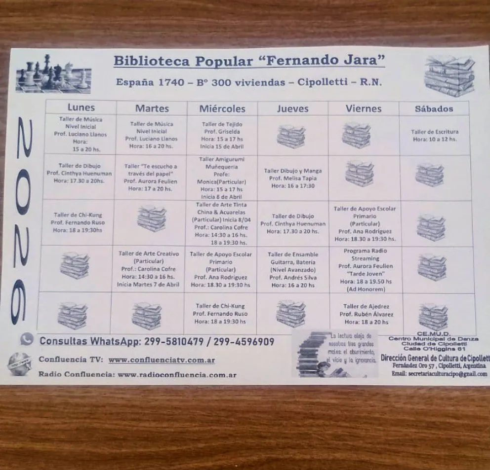 Los interesados pueden acercarse a la sede de la Biblioteca (España 1.740, Barrio 300 viviendas), con contactarse a través de los Whatsapps: 299 581 0479 / 299 459 6909.